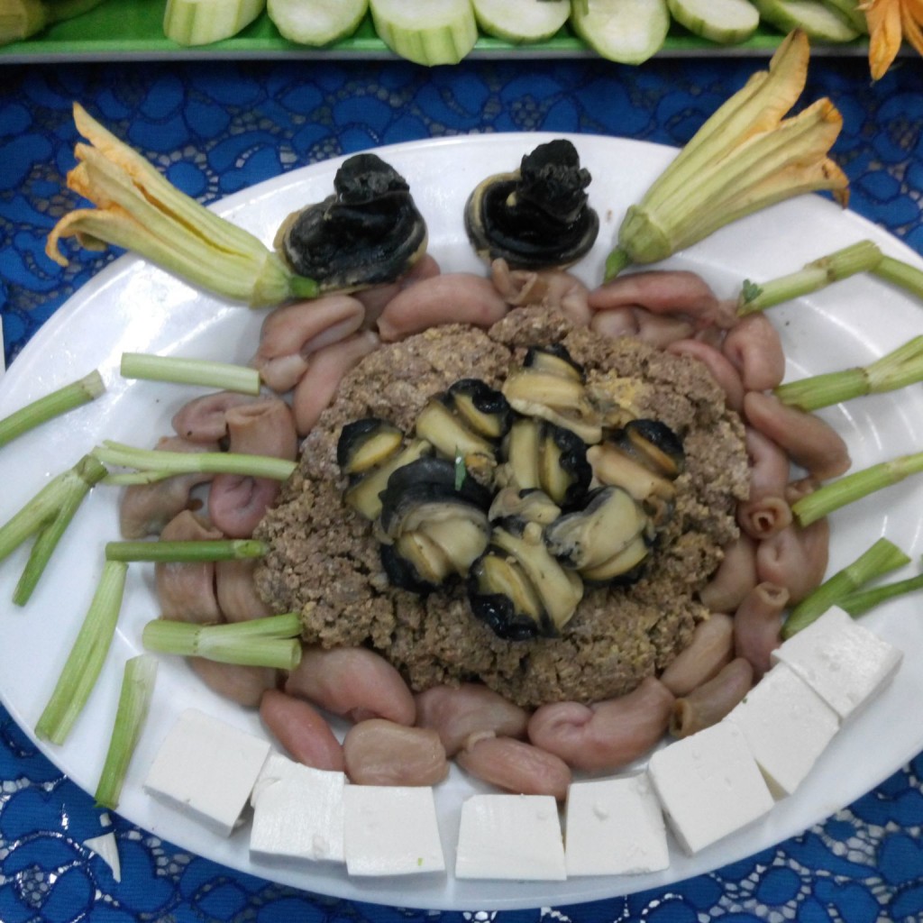 - Cho ốc bươu, bao tử cá ( đã xào chín), đậu hũ non cắt miếng vừa ăn, hột vịt lộn, vào nồi lẩu.