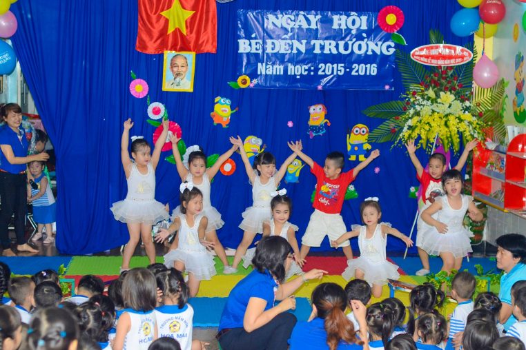 Buổi lễ diễn ra trong không khí tươi vui với nhiều hoạt động văn nghệ của cả cô và trò. Đối với các bé lớp Mầm thì đây là lễ khai giảng đầu tiên, thế nên các bé ấy hồi hộp ghê lắm. Các bé không chỉ say sưa xem những anh chị lớp lớn hát, múa, mà cũng góp vui cùng các anh chị tiết mục múa rất tự nhiên và đáng yêu. Còn các bé lớp Chồi – Lá – Hoa, cảm giác vui sướng khi được ông bà, bố mẹ, cô giáo và các bạn vỗ tay khen ngợi khi bé thể hiện các tiết mục văn nghệ hôm nay có lẽ sẽ trở thành ấn tượng đẹp khó phai trong ký ức tuổi mầm non của bé.